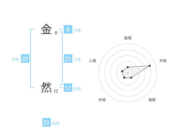 金 然さんの総格は20画の1点!