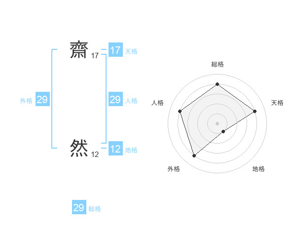 齋 然さんの総格は29画の4点!