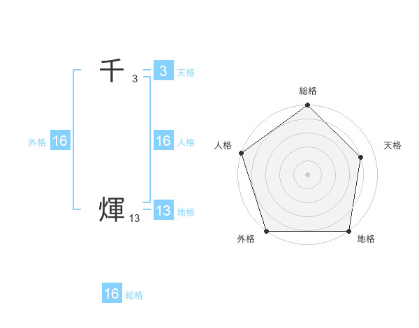 千 煇さんの外格は16画の5点!