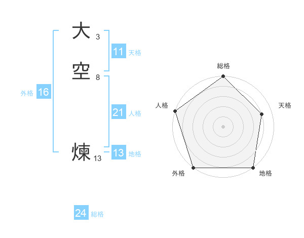大空 煉さんの外格は16画の5点!