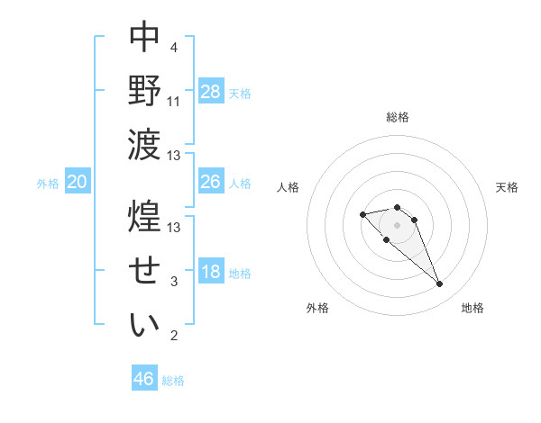 中野渡 煌せいさんを姓名の画数から五運を鑑定