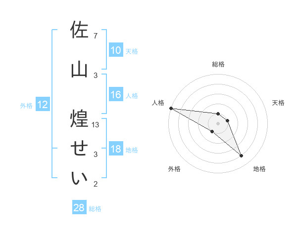 佐山 煌せいさんを姓名の画数から五運を鑑定