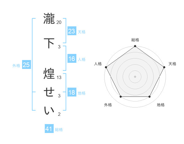 瀧下 煌せいさんを姓名の画数から五運を鑑定