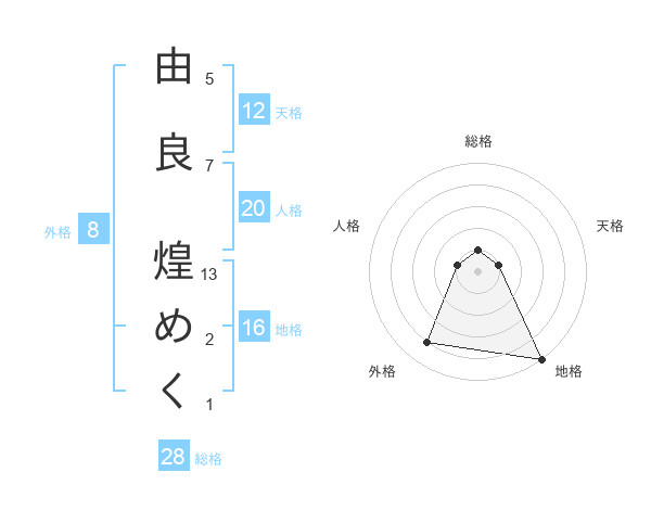 由良 煌めくさんの外格は8画の4点!