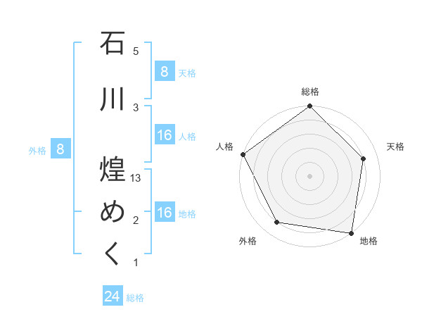石川 煌めくさんを姓名の画数から五運を鑑定