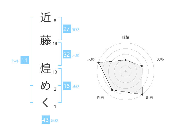 近藤 煌めくさんを姓名の画数から五運を鑑定