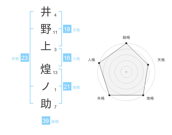 井野上 煌ノ助さんを姓名の画数から五運を鑑定