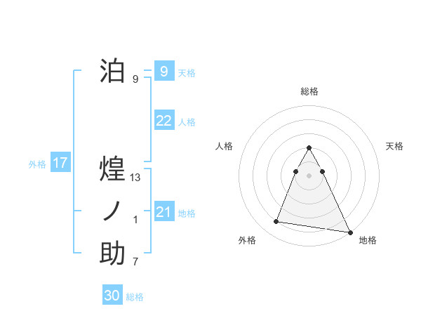 泊 煌ノ助さんの総格は30画の2点!