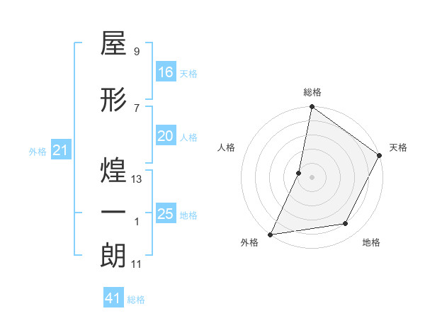 屋形 煌一朗さんを姓名の画数から五運を鑑定