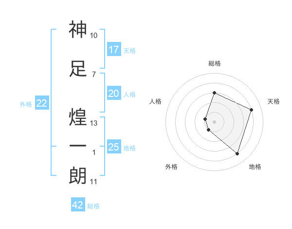 神足 煌一朗さんを姓名の画数から五運を鑑定