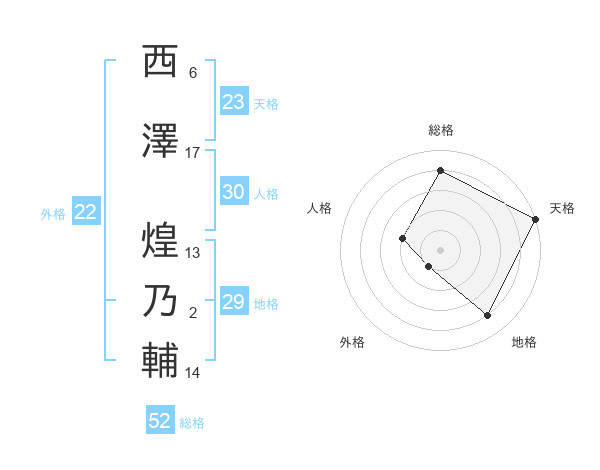 西澤 煌乃輔さんを姓名の画数から五運を鑑定