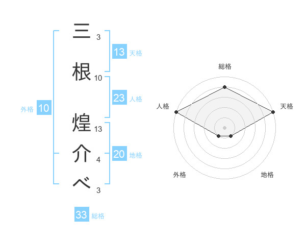 三根 煌介べさんの天格は13画の5点!