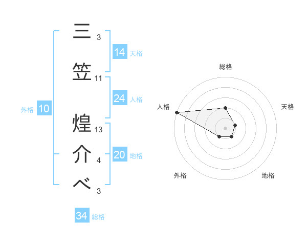 三笠 煌介べさんを姓名の画数から五運を鑑定