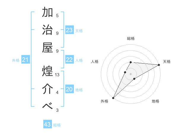 加治屋 煌介べさんを姓名の画数から五運を鑑定