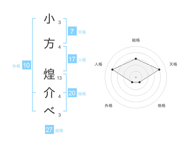 小方 煌介べさんの総格は27画の3点!
