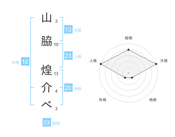 山脇 煌介べさんを姓名の画数から五運を鑑定