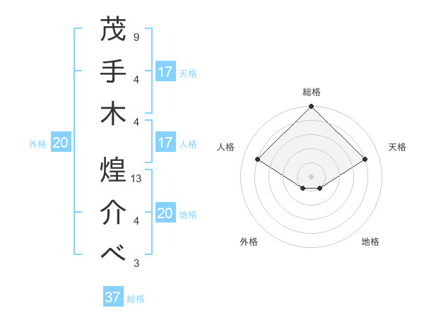 茂手木 煌介べさんの地格は20画の1点