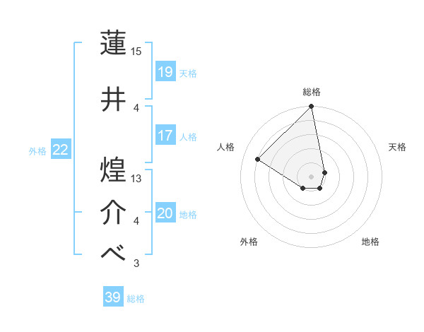 蓮井 煌介べさんを姓名の画数から五運を鑑定