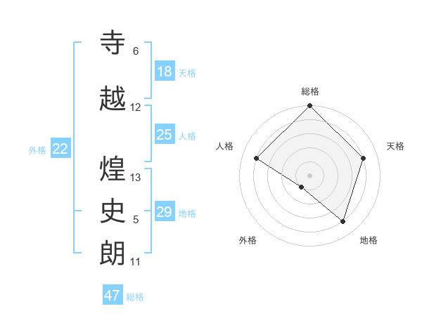 寺越 煌史朗さんの総格は47画の5点!