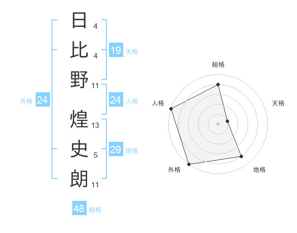 日比野 煌史朗さんの外格は24画の5点!