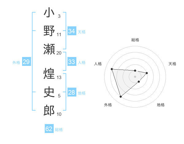 小野瀬 煌史郎さんを姓名の画数から五運を鑑定