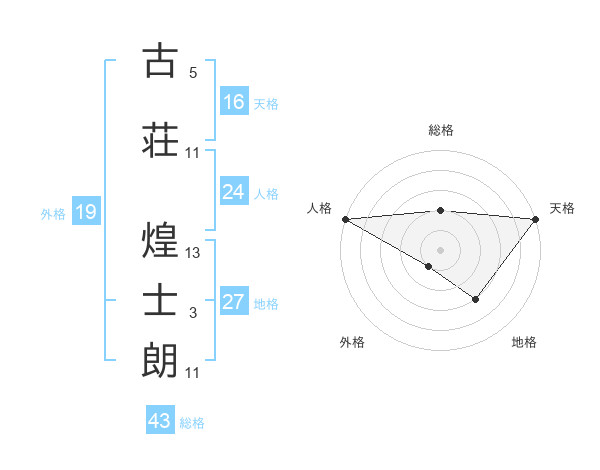 古荘 煌士朗さんを姓名の画数から五運を鑑定