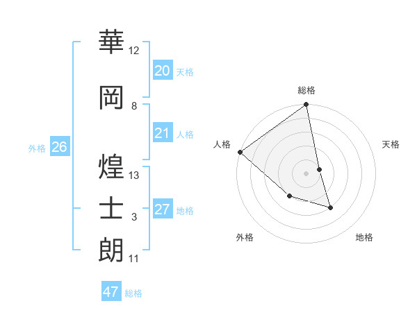 華岡 煌士朗さんの総格は47画の5点!