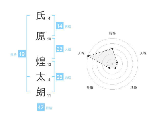 氏原 煌太朗さんを姓名の画数から五運を鑑定