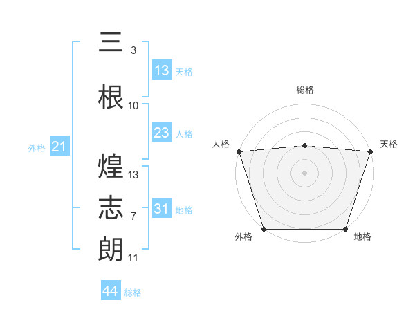 三根 煌志朗さんを姓名の画数から五運を鑑定