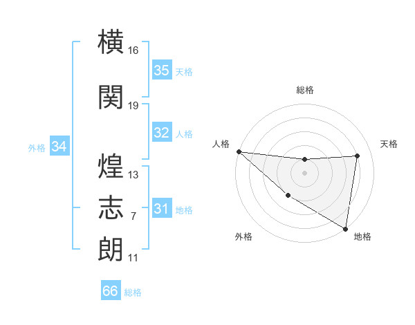 横関 煌志朗さんを姓名の画数から五運を鑑定