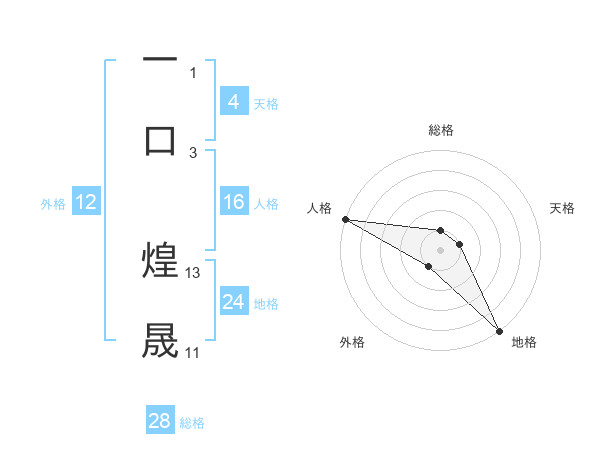 一口 煌晟さんの総格は28画の1点!