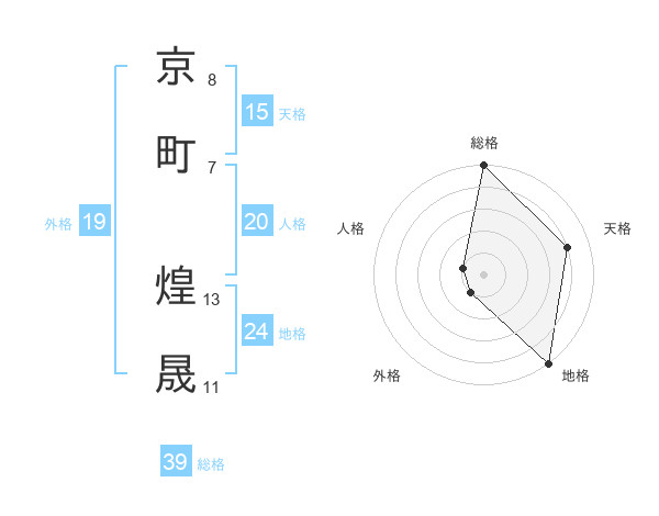 京町 煌晟さんの総格は39画の5点!