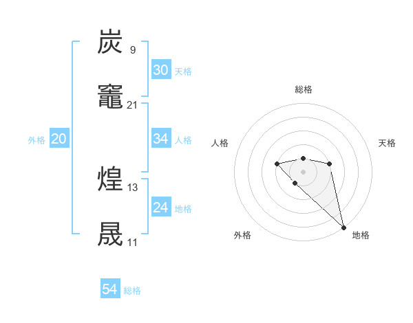 炭竈 煌晟さんを姓名の画数から五運を鑑定