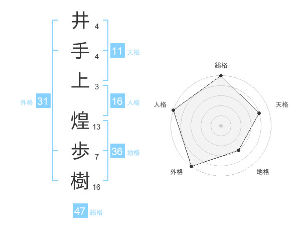 井手上 煌歩樹さんの総格は47画の5点!