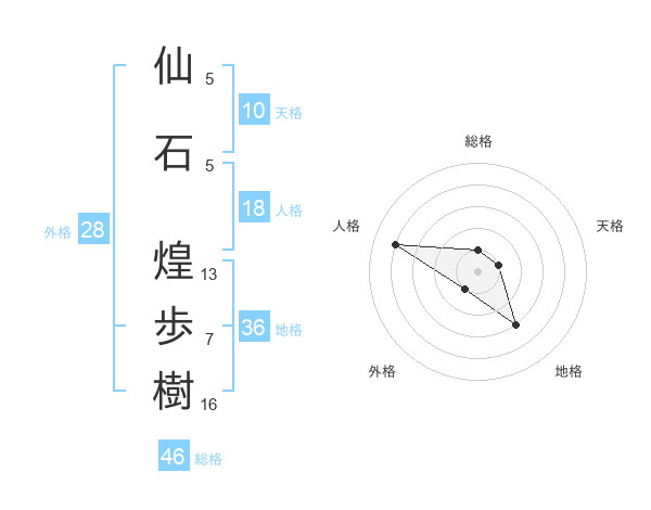 仙石 煌歩樹さんの総格は46画の1点!
