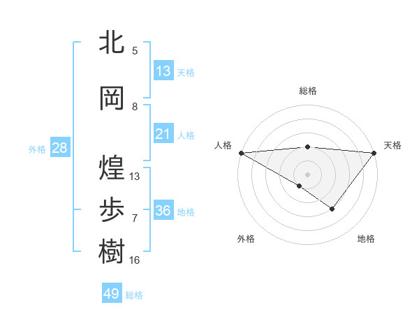 北岡 煌歩樹さんを姓名の画数から五運を鑑定
