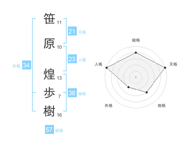 笹原 煌歩樹さんの天格は21画の5点!