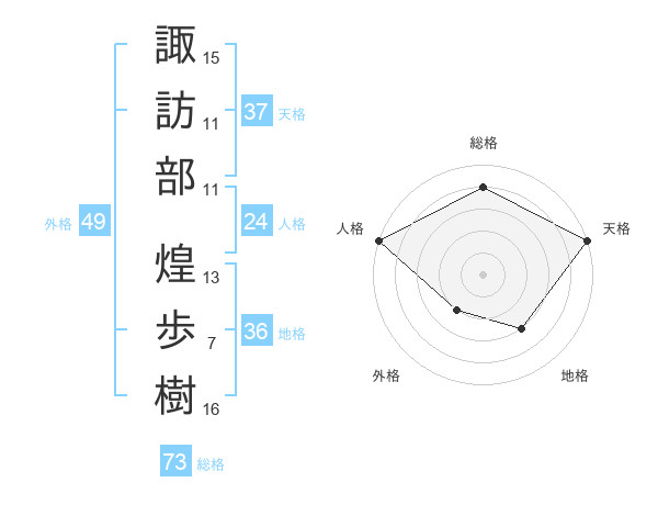 諏訪部 煌歩樹さんの総格は73画の4点!