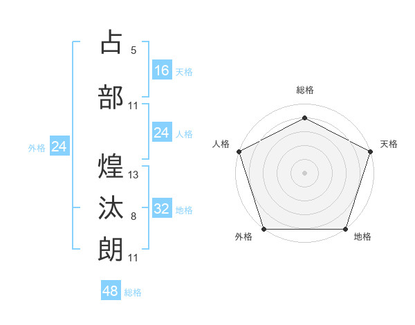 占部 煌汰朗さんの外格は24画の5点!