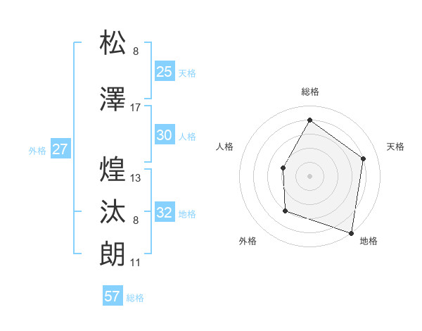 松澤 煌汰朗さんを姓名の画数から五運を鑑定