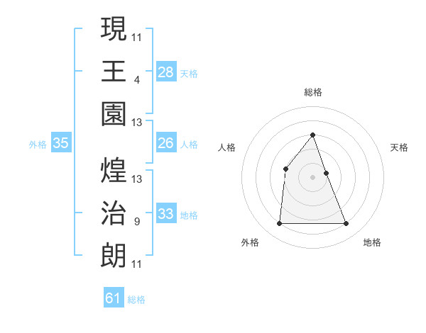 現王園 煌治朗さんを姓名の画数から五運を鑑定
