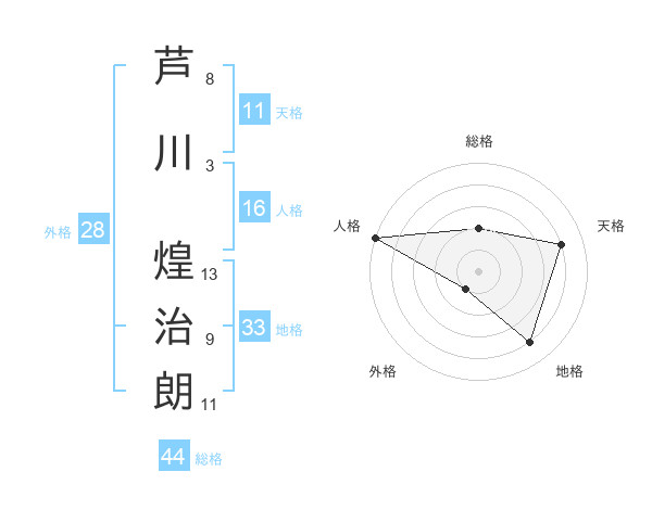 芦川 煌治朗さんの総格は44画の2点!