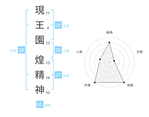 現王園 煌精神さんを姓名の画数から五運を鑑定
