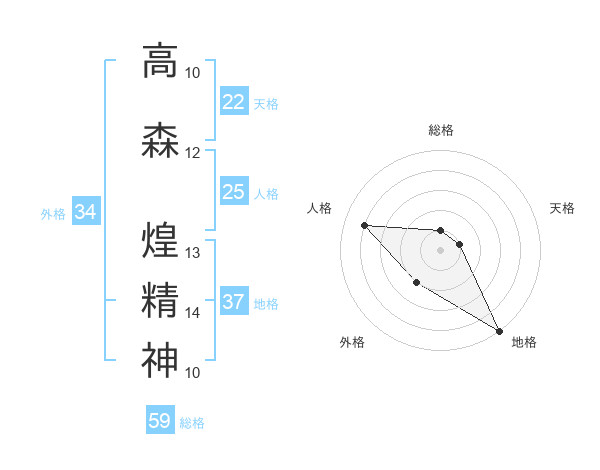 高森 煌精神さんを姓名の画数から五運を鑑定
