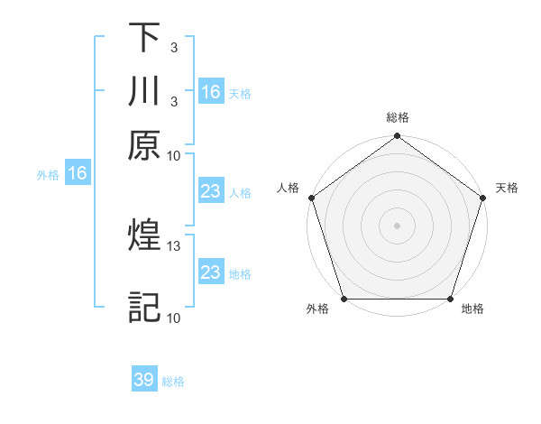 下川原 煌記さんを姓名の画数から五運を鑑定