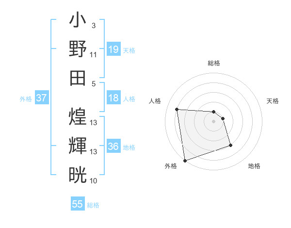 小野田 煌輝晄さんの外格は37画の5点!