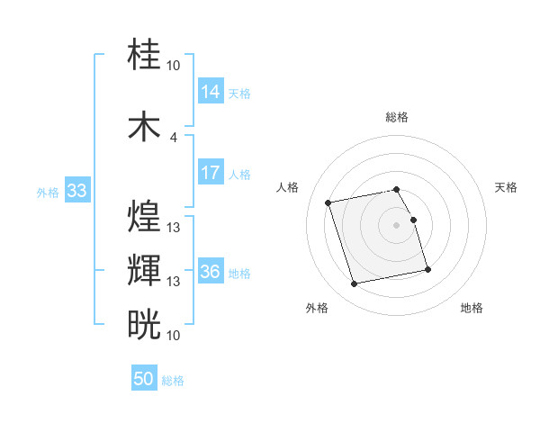 桂木 煌輝晄さんを姓名の画数から五運を鑑定