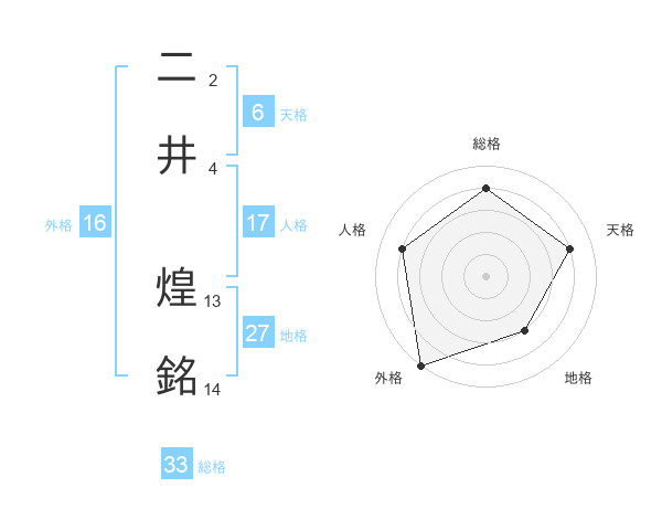 二井 煌銘さんを姓名の画数から五運を鑑定