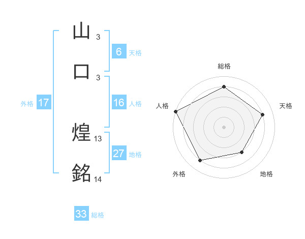 山口 煌銘さんの外格は17画の4点!
