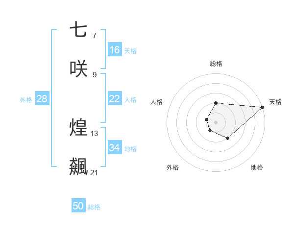 七咲 煌飆さんを姓名の画数から五運を鑑定